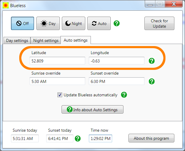 In order for this program to know the actual times of sunrise and sunset at your location, you must enter your latitude and longitude.